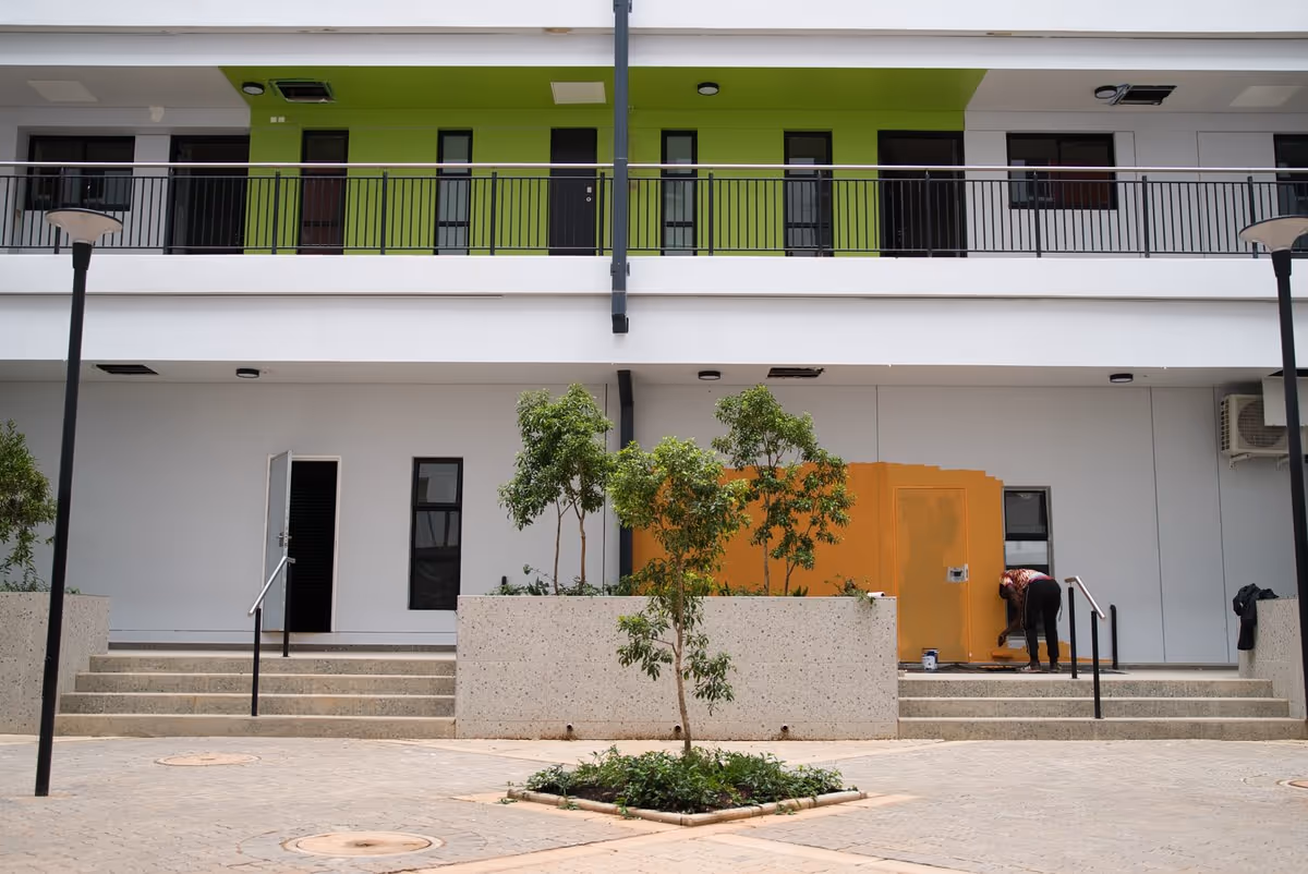 True to the Adowa design philosophy, the Ellis Park Student Village also has rooms set up in apartment like units that foster the family unit. Each unit constitutes bedrooms toilets and bathrooms and a shared kitchen between the 8 students. The kitchen is fully equipped with a refrigerator, a microwave and a four plate electric stove. Students are given individual lockers for cupboard space, allowing for secure storage.