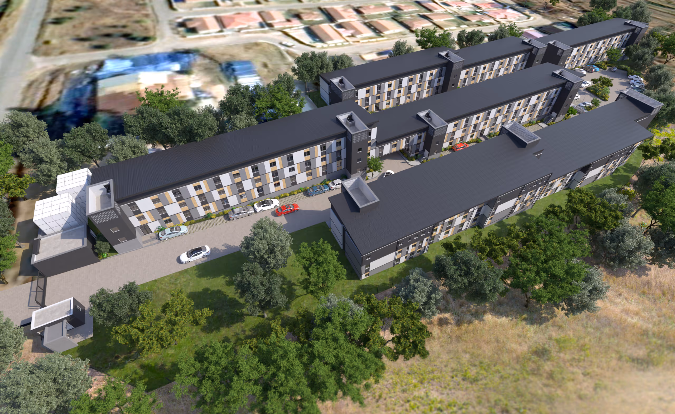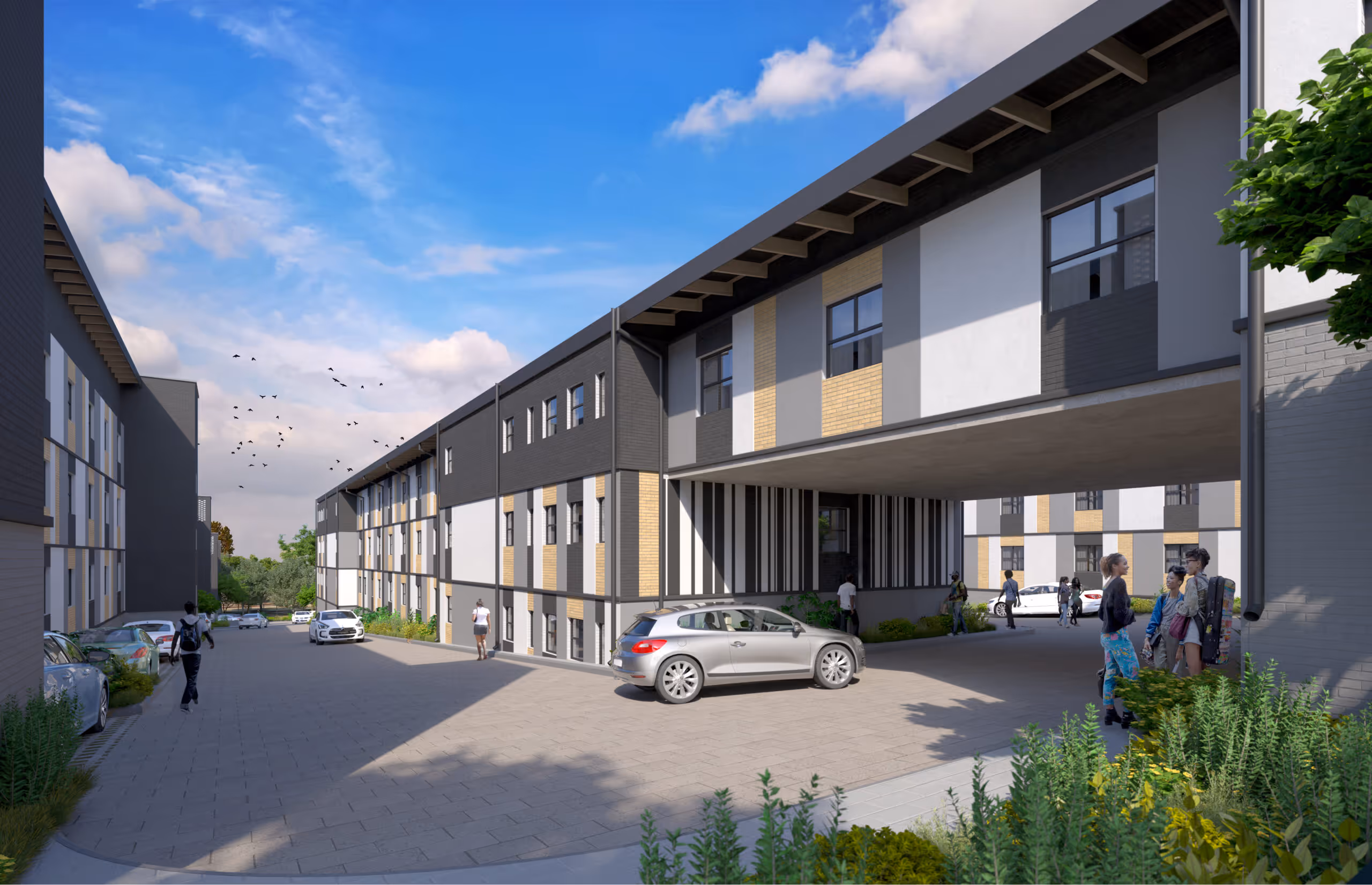 Walter Sisulu University is a landmark institution both in the Eastern Cape and in the South African tertiary context. Adowa is developing an equally epic 4 floor student accommodation building located a safe walking distance of 1.8km from the iconic university. The Southernwood Student Village building is one of the newest buildings in the Mthata area in the last 10 years and boasts the signature modern design and façade of the Adowa brand. The building is to be home to 718 students living in apartment units that combine single and two-sharing rooms with 8 to 10 students forming a “family unit” of mixed junior and senior students.